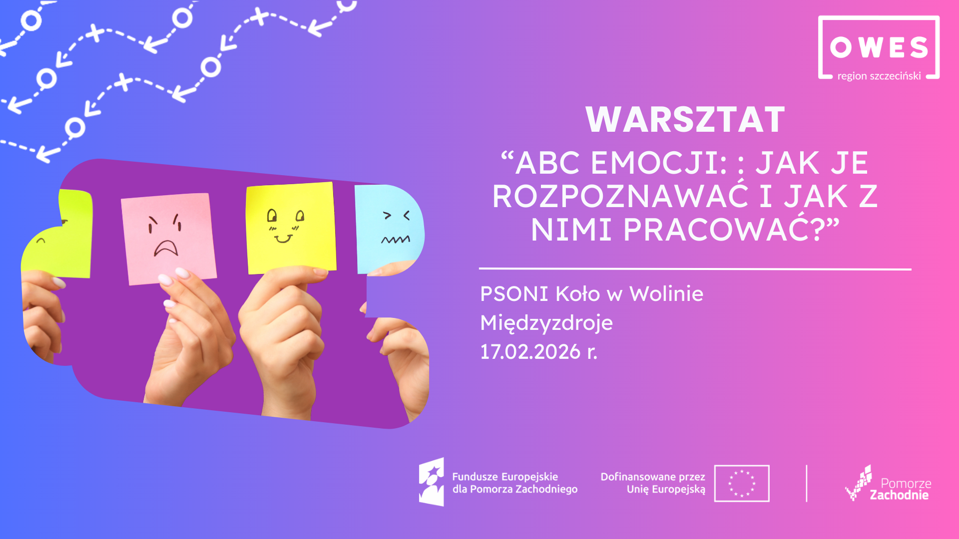 Już 17 lutego 2026 r. zespół OWES Szczecin poprowadzi kolejne warsztaty dedykowane podopiecznym Stowarzyszenia. Po raz kolejny weźmiemy pod lupę temat, który jest kluczowy dla budowania pewności siebie i samodzielności, czyli świat naszych emocji.