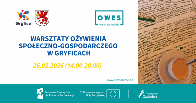 Warsztat jest organizowany przy współpracy z Gminą Gryfice i jest współfinansowany ze środków Europejskiego Funduszu Społecznego PLUS w ramach Programu Fundusze Europejskie dla Pomorza Zachodniego 2021-2027 z projektu „SZOWES-OWES w regionie szczecińskim PLUS”.