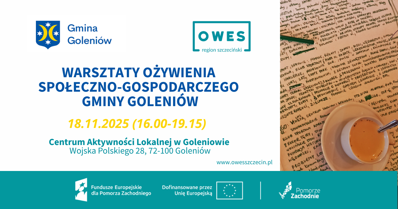 Burmistrz Gminy Goleniów Krzysztof Sypień oraz Zespół Ośrodka Wsparcia Ekonomii Społecznej w regionie szczecińskim PLUS mają zaszczyt zaprosić Państwa na „Warsztaty lokalnego ożywienia społeczno-gospodarczego Gminy Goleniów” w dniu 18.11.2025 r. […]